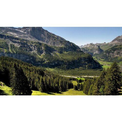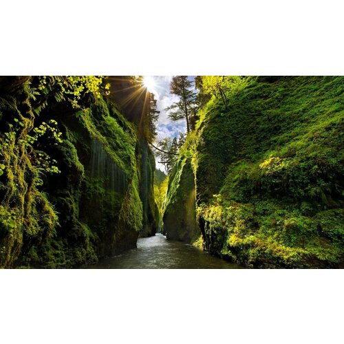 Картина на холсте 33x50 LinxOne "Лес grass горы каньон trees" интерьер для дома / декор на стену / дизайн