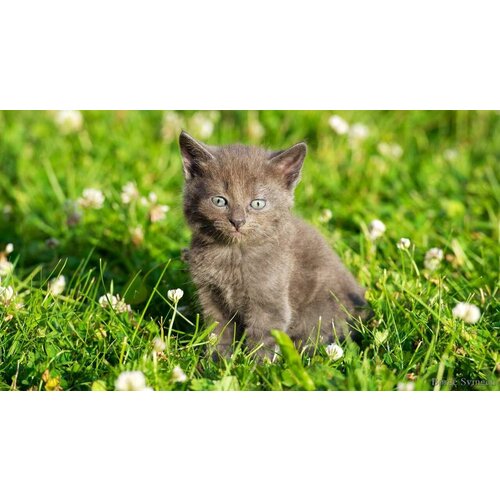 Постер на экокоже 30x30 LinxOne "Травка grass котенок flowers" интерьер для дома / декор на стену / дизайн