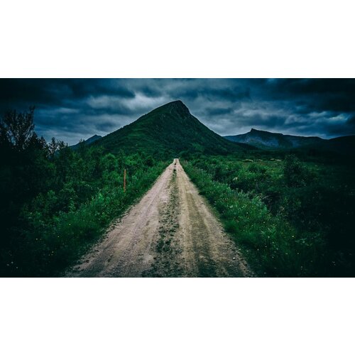 Постер на экокоже 60x60 LinxOne "Путь grass green зеленый горы" интерьер для дома / декор на стену / дизайн