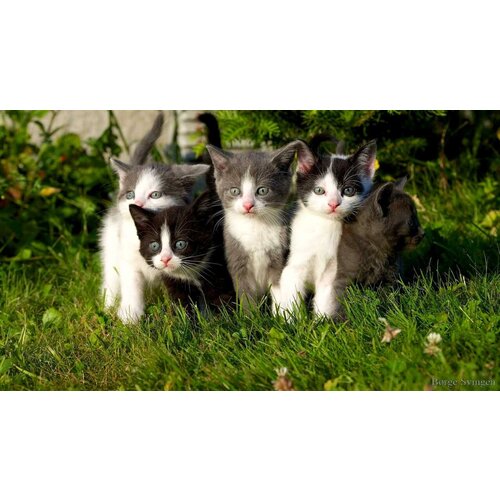 Постер на экокоже 40x50 LinxOne "Травка kittens котята grass" интерьер для дома / декор на стену / дизайн