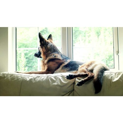 Постер на экокоже 60x60 LinxOne "Pet dog watching german shepherd" интерьер для дома / декор на стену / дизайн