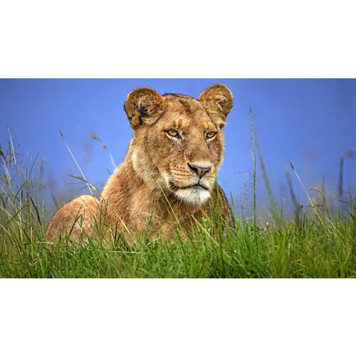 Постер на экокоже 50x60 LinxOne "Небо львица lioness sky grass" интерьер для дома / декор на стену / дизайн
