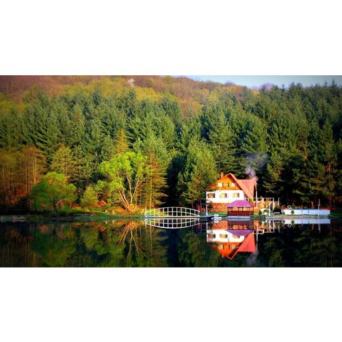 Картина на холсте 33x50 LinxOne "Tree sky lake water grass" интерьер для дома / декор на стену / дизайн