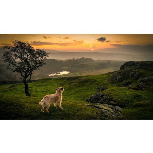Картина на холсте 50x80 LinxOne "Grass dog contemplation orange" интерьер для дома / декор на стену / дизайн