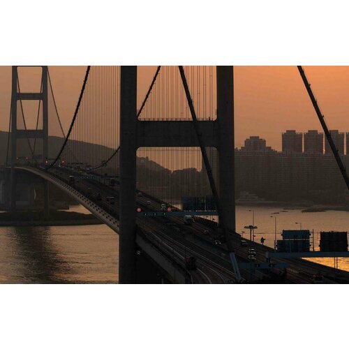 Картина на холсте 40x40 LinxOne "Golden gate, мост, дорога, река" интерьер для дома / декор на стену / дизайн
