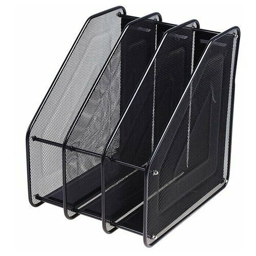 Лоток вертикальный для бумаг, 3 отделения, металлическая сетка, черный