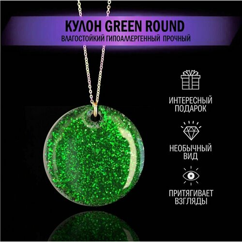 Кулон подвеска на шею Green Round женская детская цвет искрящийся зеленый подарок для девушки сестре подруге маме
