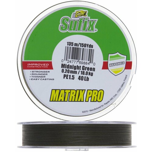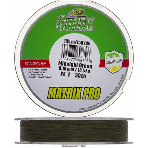 Шнур плетеный для рыбалки Sufix Matrix Pro 0,18мм 135м (midnight green)
