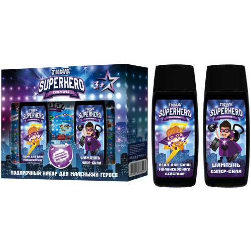 Подарочный набор Compliment Kids Superhero c ароматом жвачки: пена для душа, 200 мл + шампунь для волос, 200 мл + игра настольная