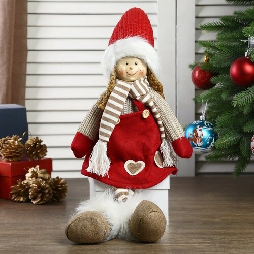 Кукла интерьерная Девочка в красном колпаке и полосатом шарфике 57 см