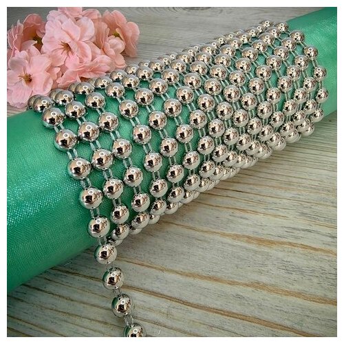 Тонкие бусины на леске металлик/ круглые диаметр 10мм/цвет серебристый (3м)