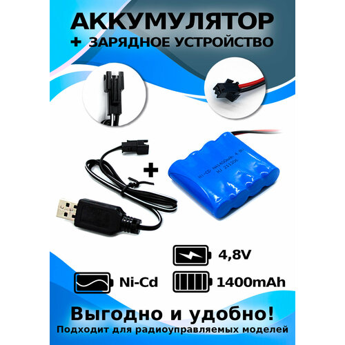 Аккумулятор 4.8 V увеличенной емкости 1400 mAh, USB зарядка в комплекте