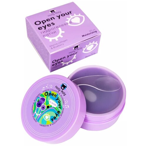 Гидрогелевые патчи для глаз Holly Polly Open your eyes с Морским Коллагеном и экстрактом Черники,60шт (Увлажнение и анти-эйдж эффект)