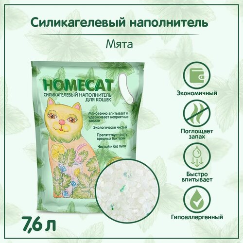 Наполнитель силикагелевый для кошачьего туалета Homecat, впитывающий, мята 7.6 л 1 шт