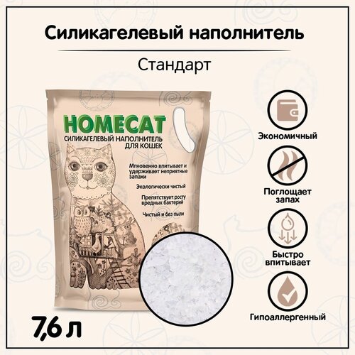 Наполнитель силикагелевый для кошачьего туалета Homecat, впитывающий, без отдушки 7.6 л 1 шт