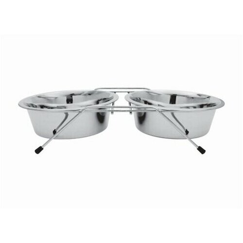 Миска для домашних животных HOMEPET металлическая двойная на подставке D 22 см 2 х 1,5л