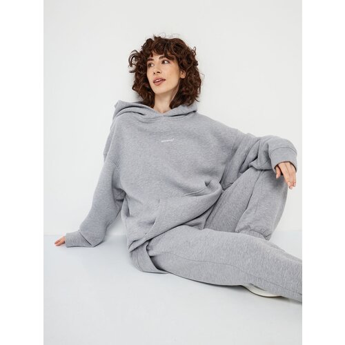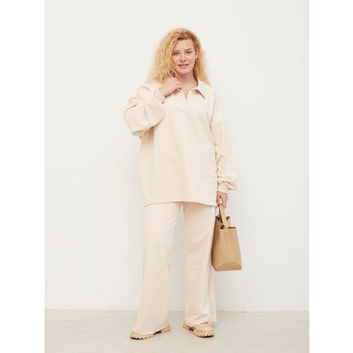 Свитшот HOODIEVLUDI, оверсайз, удлиненный, трикотажный, размер M, бежевый