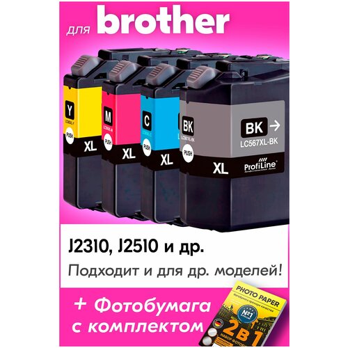 Картриджи для Brother LC-565XL, LC-567XL, Brother MFC-J2310, MFC-J2510, 4 шт, Черный, Голубой, Пурпурный, Желтый