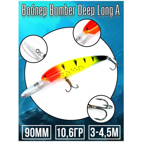 Воблер Columbia Bomber Deep Long A 90мм 10.6гр 3-4.5м, Воблер для троллинга, Приманка для спиннинга на щуку, окунь, судак