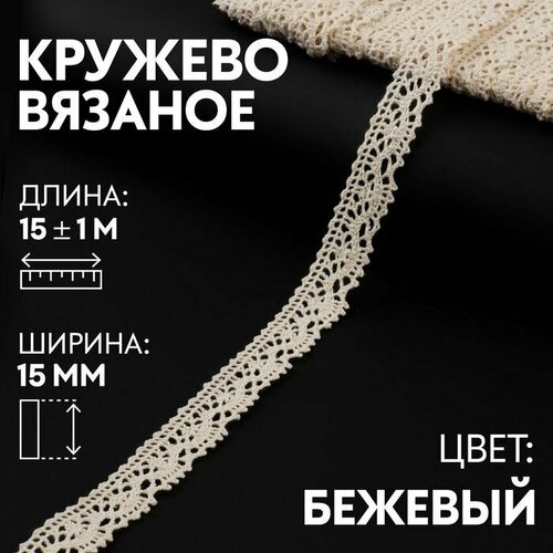 Кружево вязаное, 15 мм 15 1 м, цвет бежевый