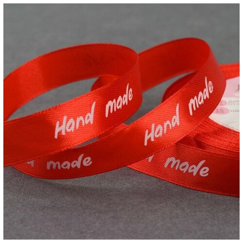 Лента атласная «Hand Made», 15 мм × 23 ± 1 м, цвет красный