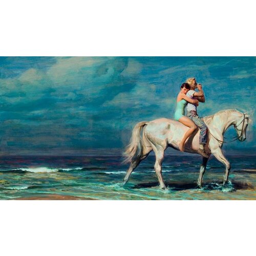 Постер на экокоже 60x110 LinxOne "Женщина мужчина берег tom" интерьер для дома / декор на стену / дизайн