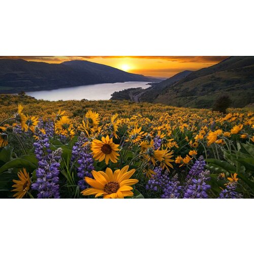 Постер на экокоже 60x100 LinxOne "Закат Tom McCall Preserve" интерьер для дома / декор на стену / дизайн