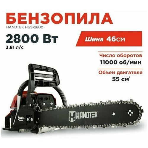 Бензопила цепная пила Handtek HGS-2800 красная, 2800 Вт 3.81 л.с, 11000 об/мин, 72 звена/ двухтактный двигатель, шина 46см, зубчатый упор
