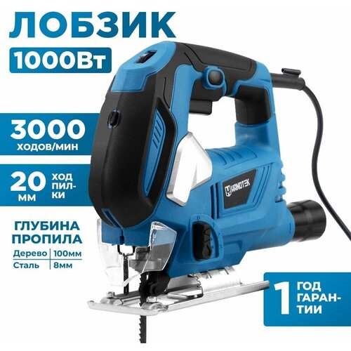 Лобзик электрический сетевой Handtek JS 1000R 1000Вт, пропил 100мм,1000-3000 ходов в минуту, маятниковый режим, лазер + фонарик пилка в комплекте