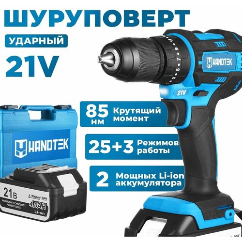 HANDTEK / Дрель шуруповерт аккумуляторная бесщеточная Handtek CD2185L2, 2Ач, 1700 об. мин, 21В, 85 Н. м, 10мм