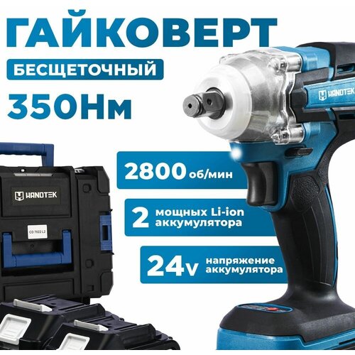 Гайковерт бесщеточный ударный аккумуляторный HANDTEK CD 7022 L2, 24В, 350 Нм, 2800 об/мин, 4 Ач, 3500 уд/мин, кейс + 2 Li-ion аккумулятора 4Ач