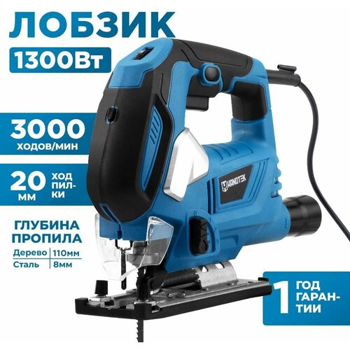 Лобзик электрический сетевой Handtek JS 1300R, 1300Вт, пропил 110мм,1000-3000 ходов/мин,маятниковый ход, лазер + фонарик, пилка в комплекте
