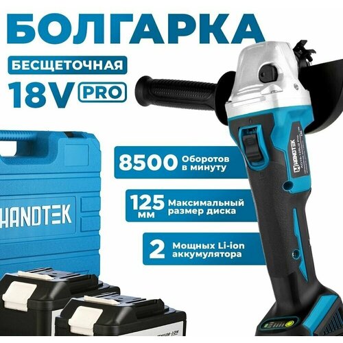 Угловая шлифовальная машина аккумуляторная Handtek AG18-125Li2 PRO, 18В, 8500 об/мин, Болгарка/УШМ бесщеточная 125мм, кейс + 2 АКБ 4А*ч, + Диск 115мм