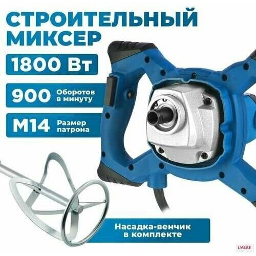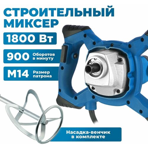 Миксер строительный для приготовления смеси HANDTEK , 6 скоростей, регулировка оборотов, 1800 Вт, 900 об/мин, насадка миксер/венчик в комплекте