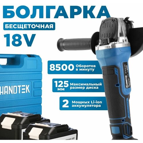 Угловая шлифовальная машина аккумуляторная Handtek AG18-125Li2 NEW, 18В, 8500 об/мин Болгарка/УШМ бесщеточная 125мм, кейс+2 АКБ 4А*ч, Диск в подарок