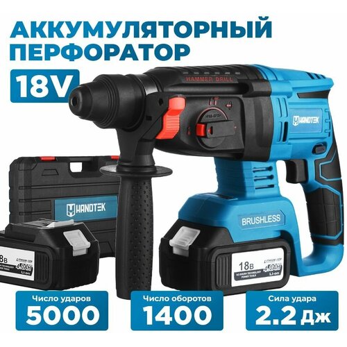 Перфоратор аккумуляторный электрический Handtek CD28118 L2, 18V, 4Ач, 2.2 Дж, кейс+набор оснастки, SDS Plus