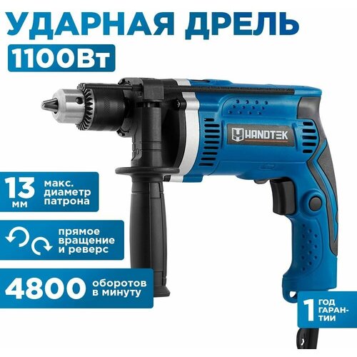 Дрель ударная Handtek-1630 RE, 1100 Вт, 4800 об.мин., строительные инструменты