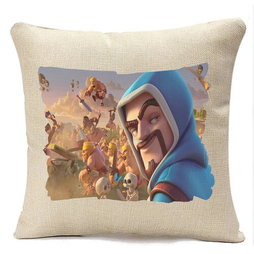 Подушка белая CoolPodarok Клэш оф клэнс Games Clash of Clans (персонаж в синем капюшоне)