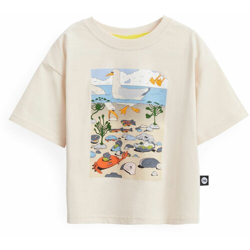 88501, Футболка детская хлопковая, спортивная, с коротким рукавом, оверсайз, молочная, краб, рост 122-128
