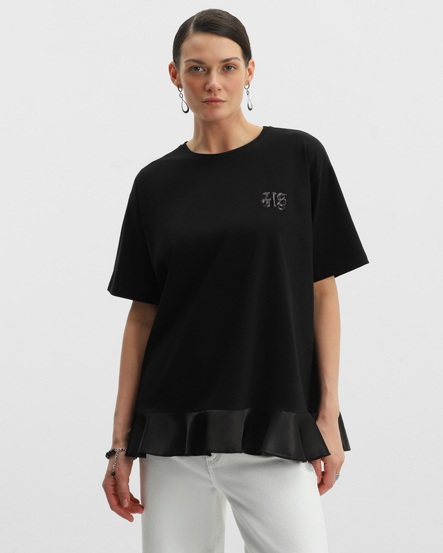 Футболка свободного кроя с декором рюшами