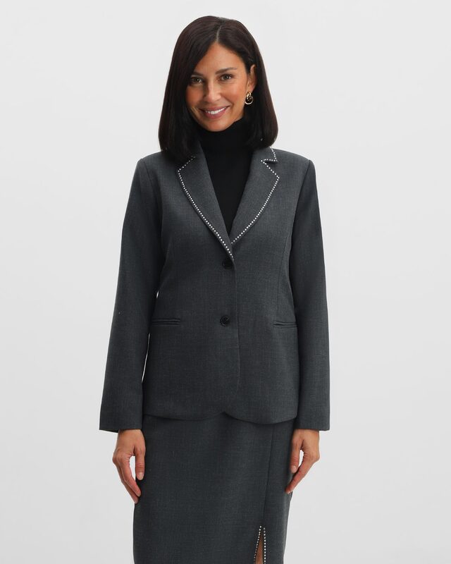 Приталенный жакет со стразами по воротнику