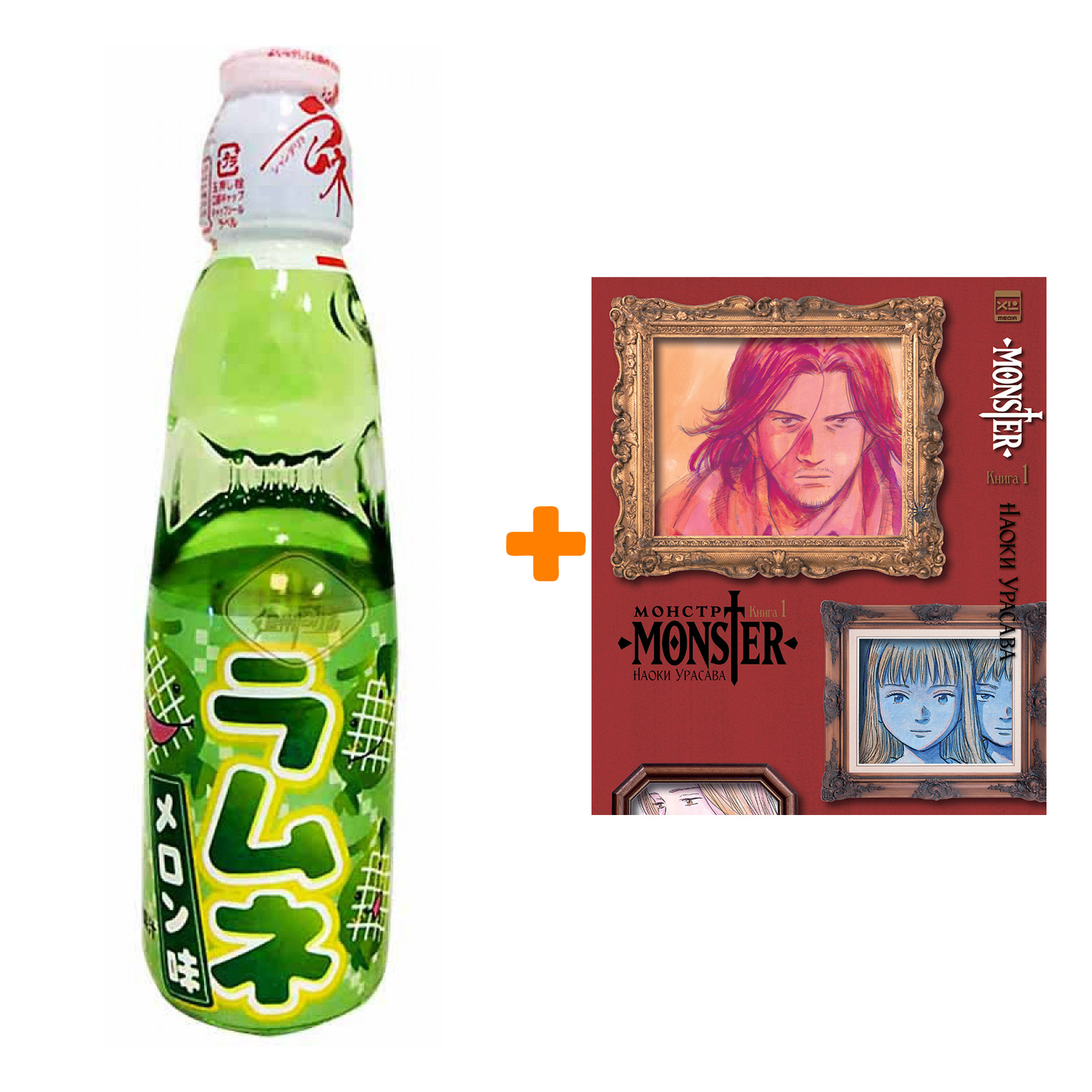 Набор Манга Монстр. Том 1 + Напиток газированный Ramune Lemonade Melon Вкус дыни 200мл