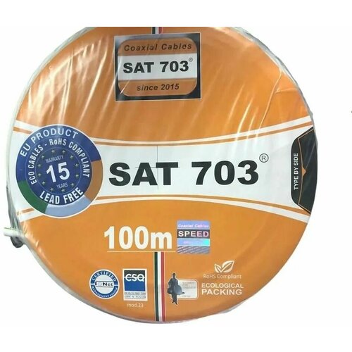 Кабель коаксиальный SAT-703, 75 Ом,медь, белый (100 метров)