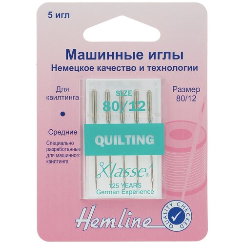 Иглы для бытовых швейных машин Hemline, для квилтинга, №80, 5 шт