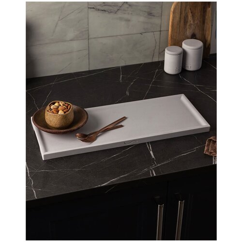Декоративный кухонный поднос Dorian Long L, 50x20 см, бетон, кремовый матовый