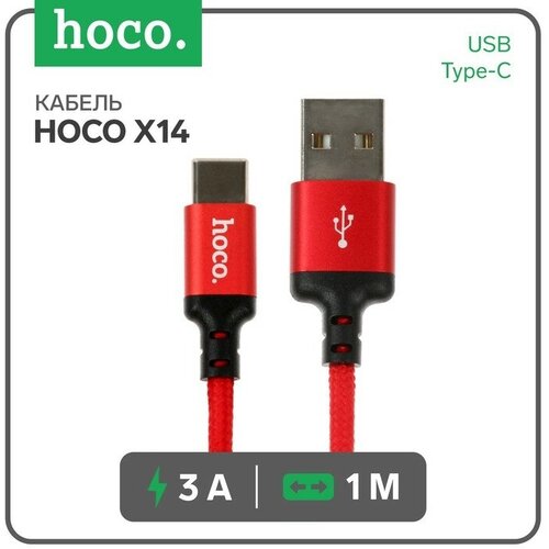 Кабель Hoco X14 Times Speed, Type-С - USB, 3 А, 1 м, черно-красный