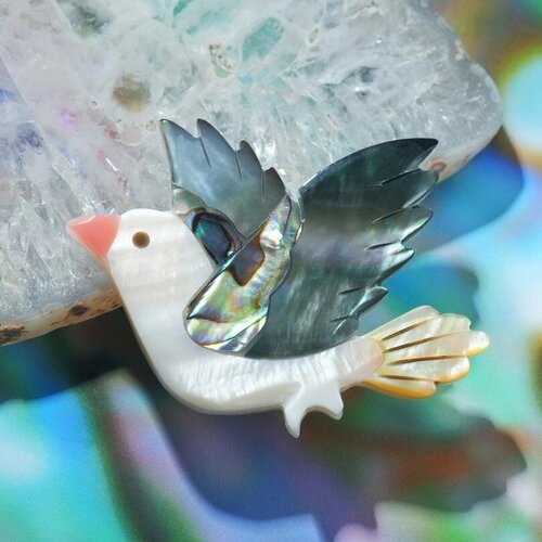 Брошь - Галиотис, птица тропическая, разноцветная в серебре, из металла, 1 шт.