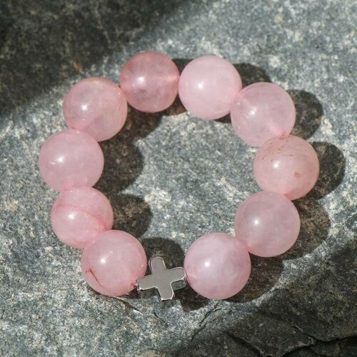 Четки перстные - шар №10, Кварц, прессованный камень, розовые, 10 бусин с крестиком, 5 см, 1 шт.