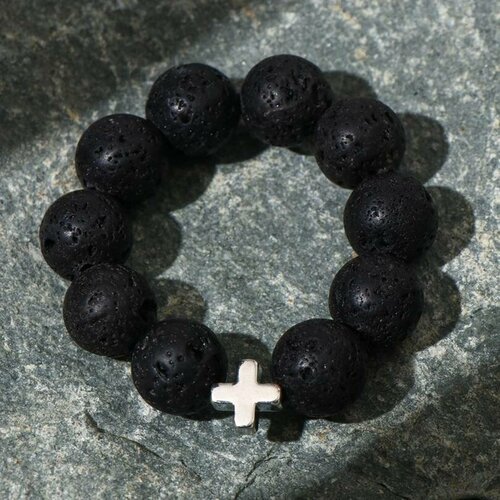 Четки перстные - шар №10, Лава, прессованный камень, черные, 10 бусин с крестиком, 5 см, 1 шт.