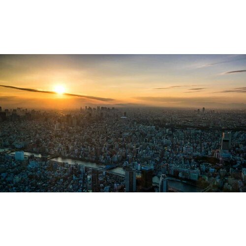 Картина на холсте 50x60 LinxOne "Tokyo вид рассвет закат река" интерьер для дома / декор на стену / дизайн
